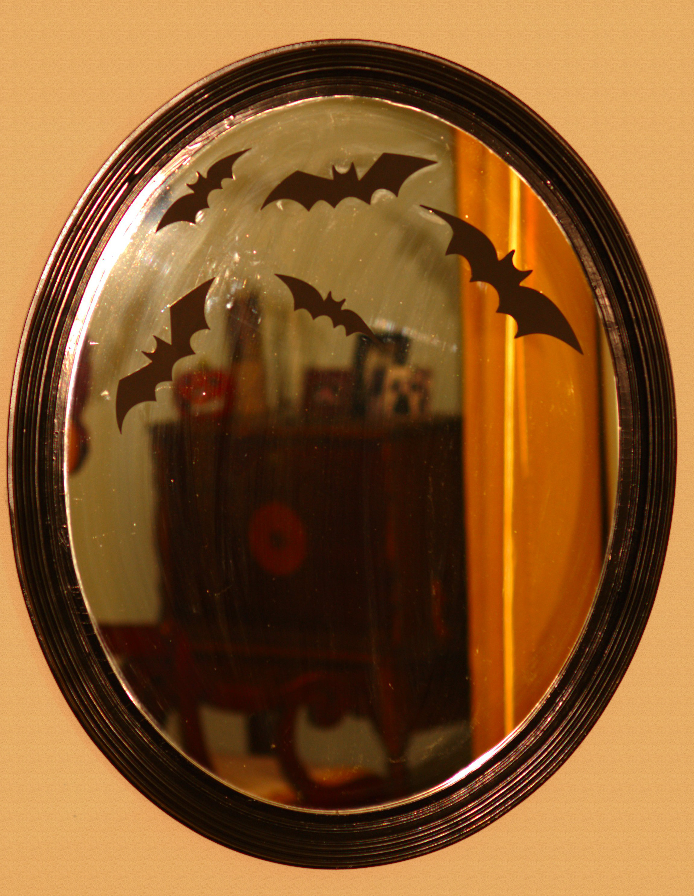 Mirrors – We keep a mirror behind the door to deflect anything spiritually harmful (currently decorated for Halloween with some bats).