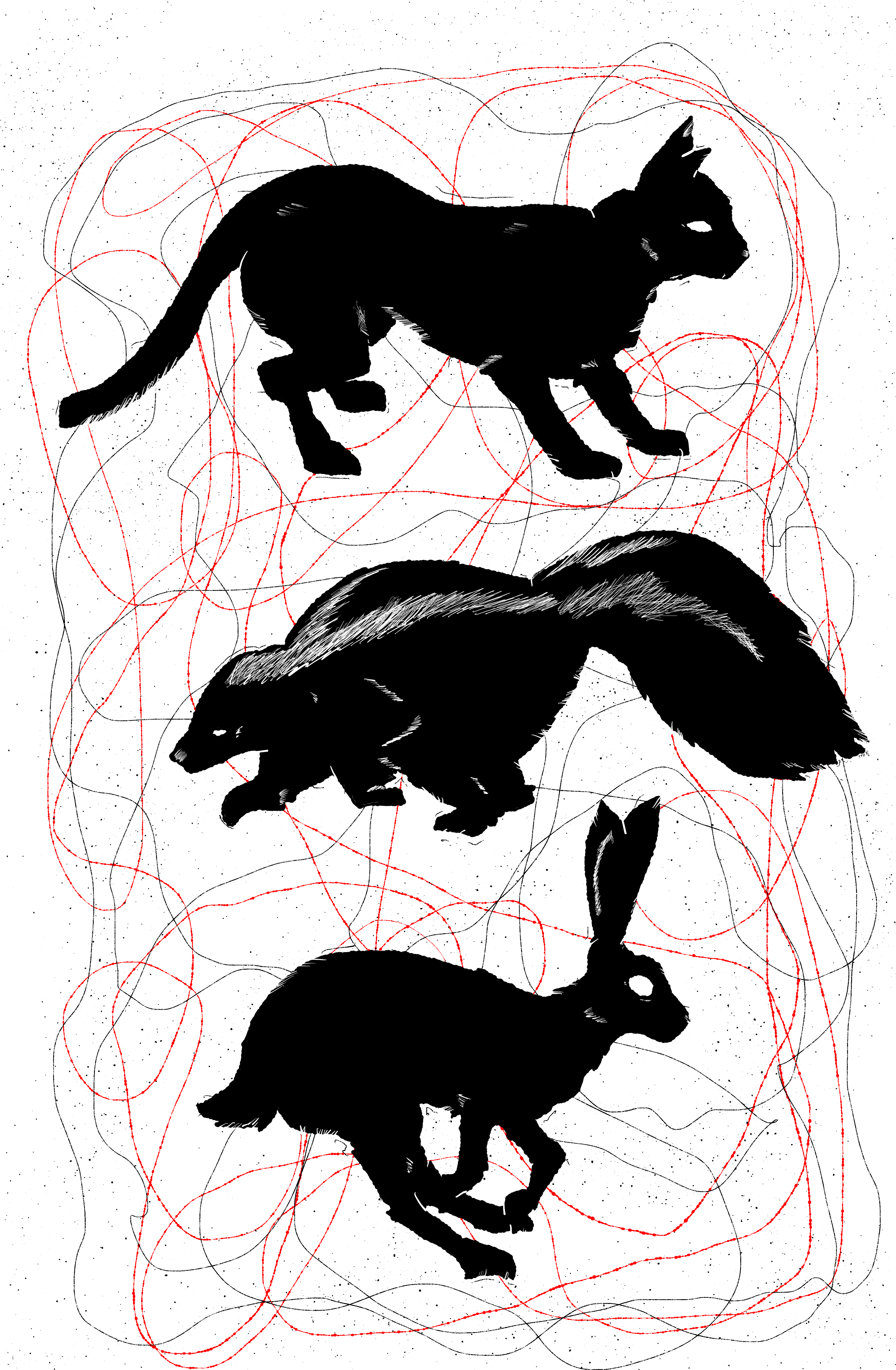 - Several sources indicate that you must restart a journey if a black cat crosses your path. Similarly, other black-completed animals such as skunks, rabbits, or squirrels can all require such a turning back and beginning again (Hyatt 53)