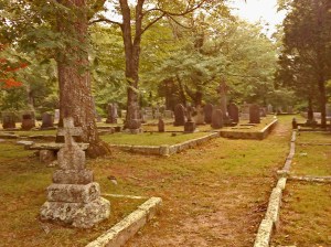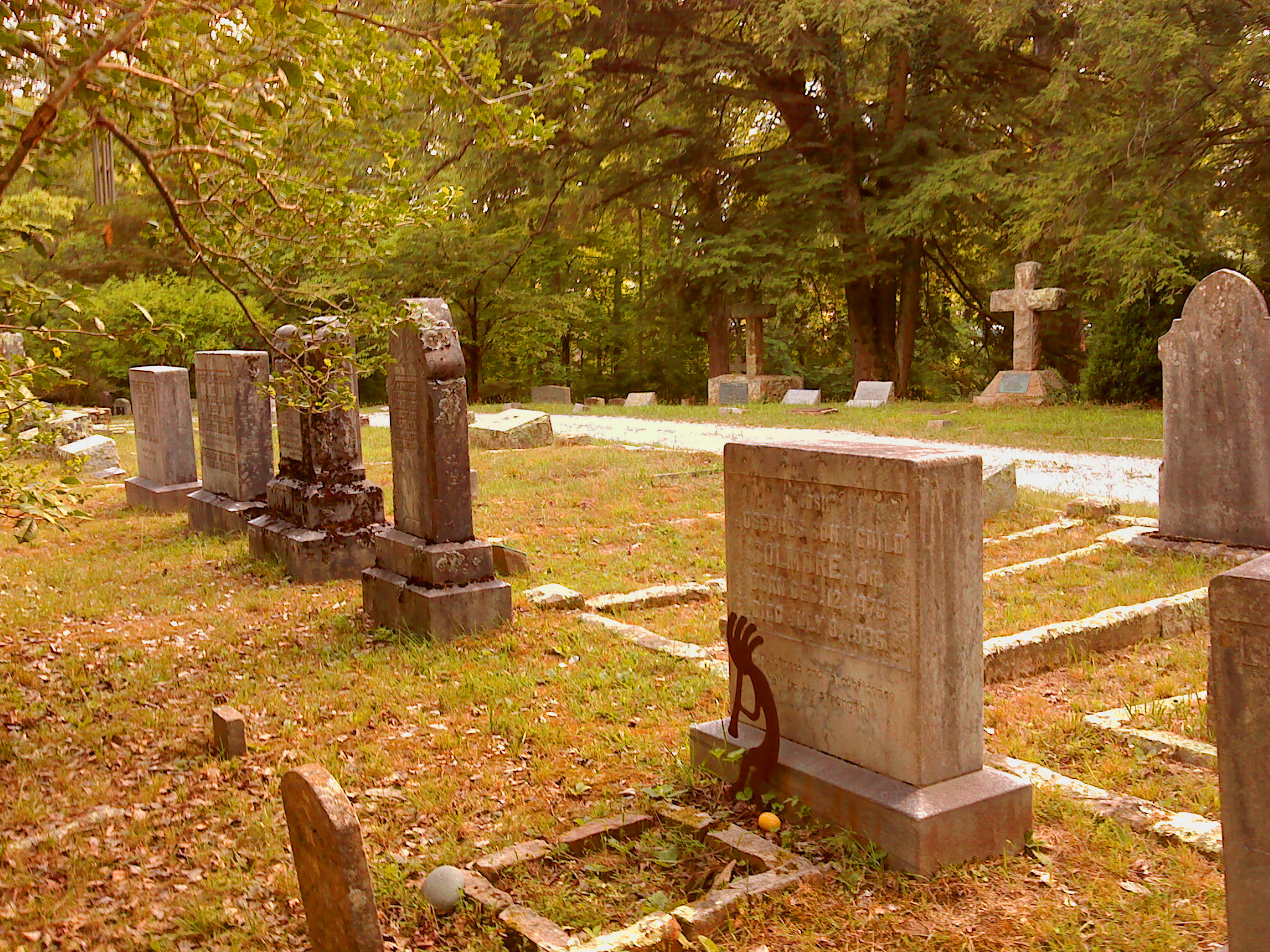 The time I spent here mostly involved taking late night (or often midnight) walking tours of the area. Among all those graves and under a very starry sky, it was pretty amazing. If you’re wondering whether or not I encountered “anyone,” though, I have to say the answer is no. I did bring offerings of food and whiskey several times, leaving them near the small side gate rather than any specific grave (since I wasn’t trying to contact anyone in particular, that made sense to me). Wildlife abounds near this cemetery, so I often heard things wandering out in the dark just beyond the light’s cast. I even occasionally met other folks taking late night constitutionals among the headstones.