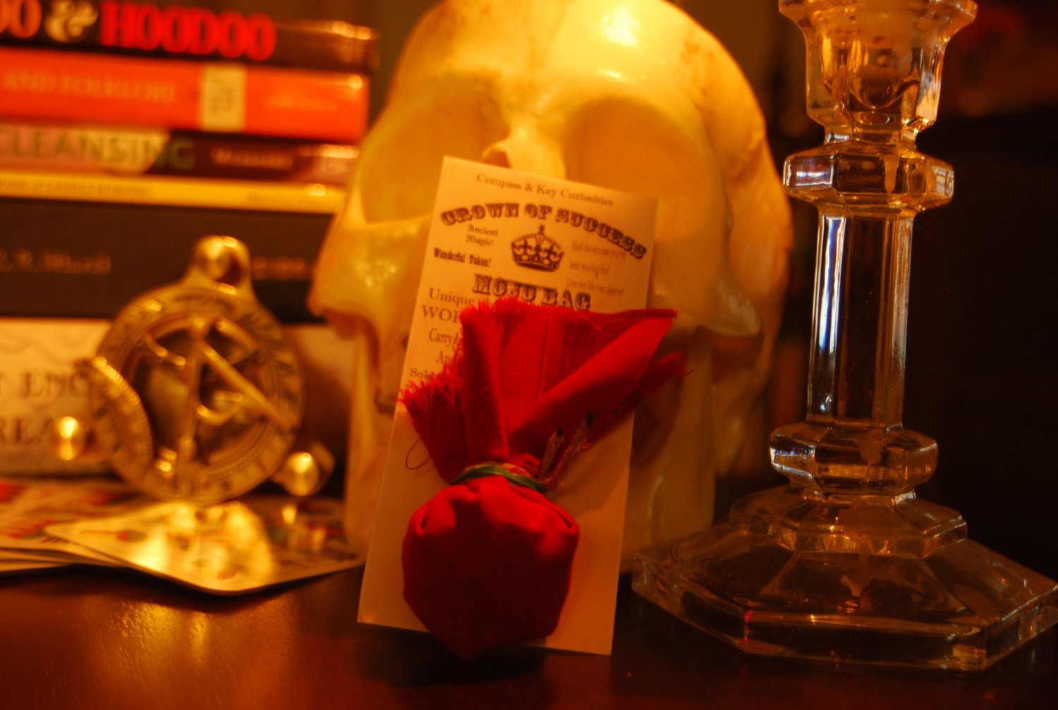 Since I wanted to do well in my schoolwork, I also made up a potent little mojo bag, which I carried in my pocket. I anointed it daily with either Crown of Success oil or some local whiskey, depending on what seemed appropriate for the day. As far as I can tell, it worked magnificently (though I’m still waiting to get final grades back…mojo don’t fail me now!). I may outline just how I made this specific mojo bag later this week in case there are other students looking for a little “oomf” in their studies.