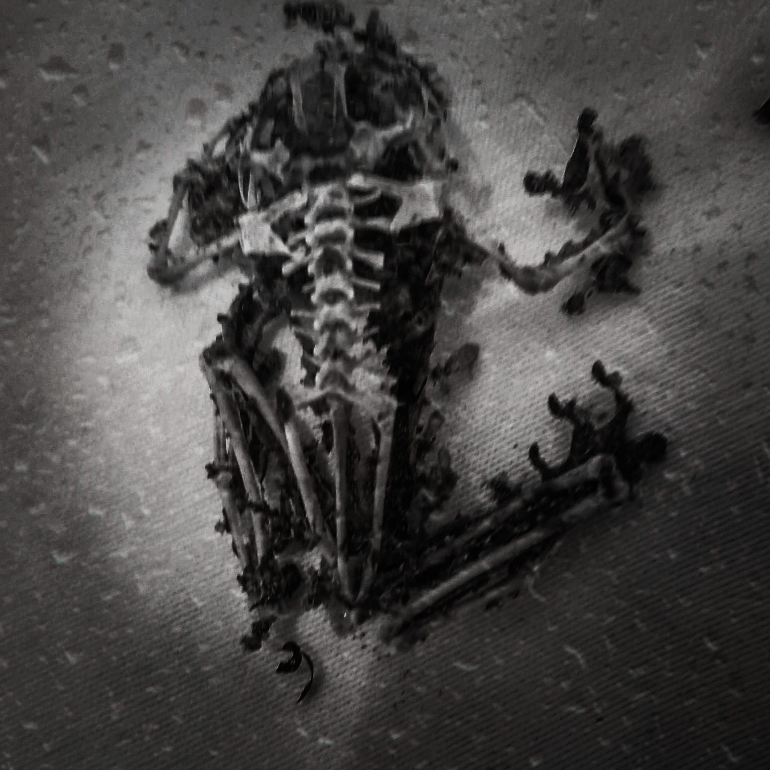 A desiccated frog skeleton found in my in-laws’ house hidden in the back of a cabinet; you never know when you’ll find these sorts of things!